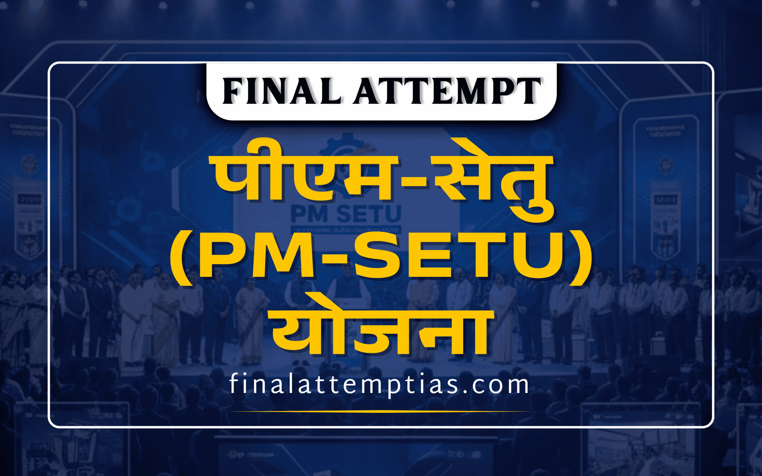 PM-SETU का पूर्ण नाम प्रधान मंत्री स्किलिंग एंड एम्प्लॉयबिलिटी ट्रांसफॉर्मेशन थ्रू अपग्रेडेड ITIs है। यह एक केंद्र प्रायोजित योजना (Centrally Sponsored Scheme) है, जिसका क्रियान्वयन कौशल विकास और उद्यमशीलता मंत्रालय द्वारा किया जा रहा है।
