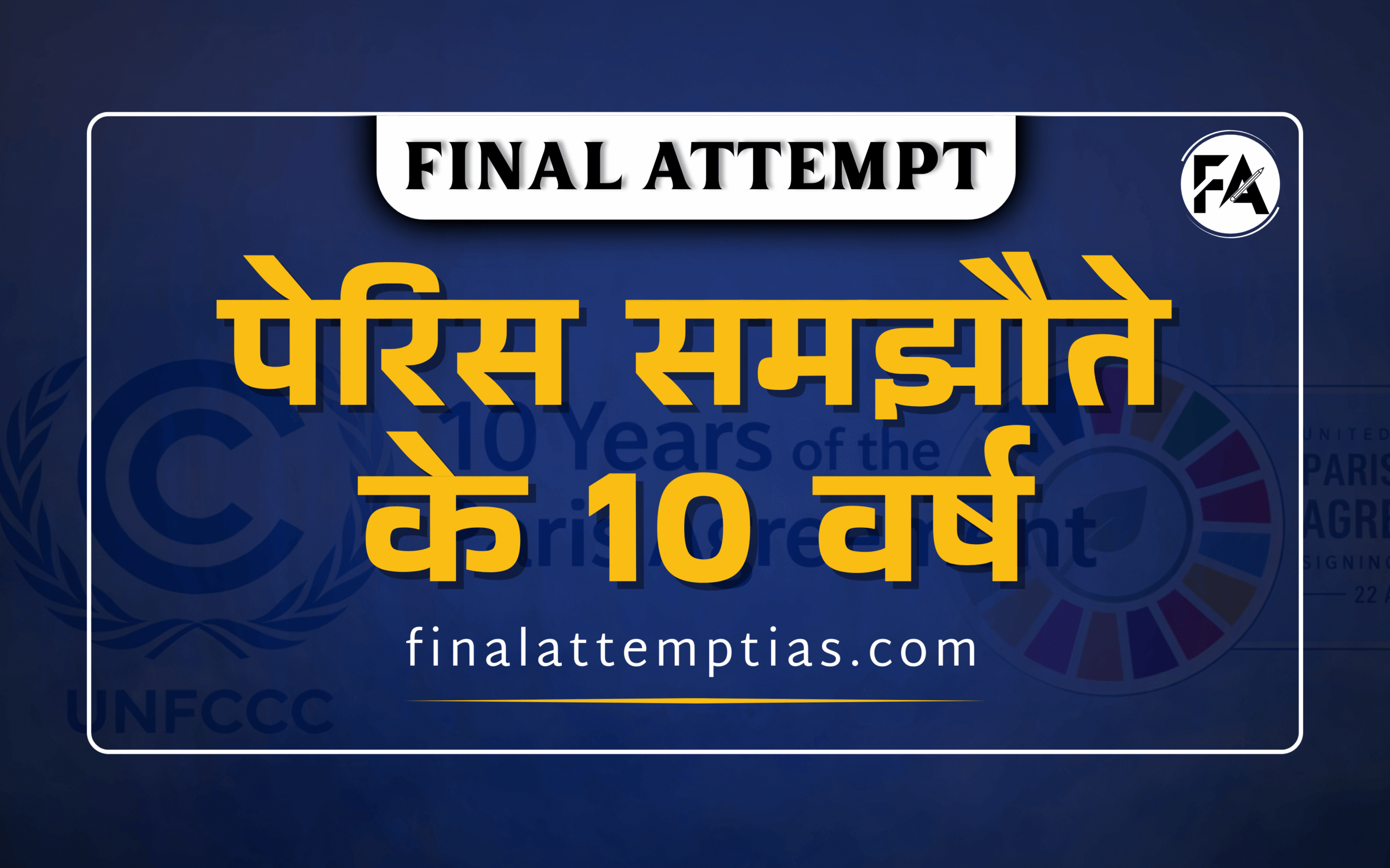 पेरिस समझौता, जिसे वर्ष 2015 में जलवायु परिवर्तन पर संयुक्त राष्ट्र फ्रेमवर्क कन्वेंशन (UNFCCC) के तहत अंगीकार किया गया था, नवंबर 2025 में अपने दस वर्ष पूर्ण कर चुका है। इस अवसर पर वैश्विक स्तर पर इसकी प्रभावशीलता, प्रासंगिकता और वास्तविक परिणामों का पुनर्मूल्यांकन किया जा रहा है। बदलते जलवायु परिदृश्य, बढ़ते चरम मौसमीय घटनाएँ और विकासशील देशों की बढ़ती आवश्यकताओं के बीच यह मूल्यांकन और अधिक महत्त्वपूर्ण हो गया है।